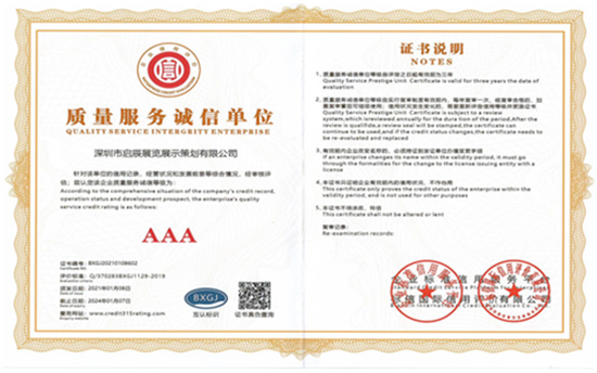 啟辰作為國內最早專(zhuān)注從事展覽館設計的公司,并榮獲“中國品牌設計機構”,公司具備“中國展覽館設計施工一級資質(zhì)企業(yè)”、“國家高新技術(shù)企業(yè)”、“中國多媒體工程系統集成資質(zhì)一級”等相關(guān)專(zhuān)業(yè)資質(zhì)及榮譽(yù)。