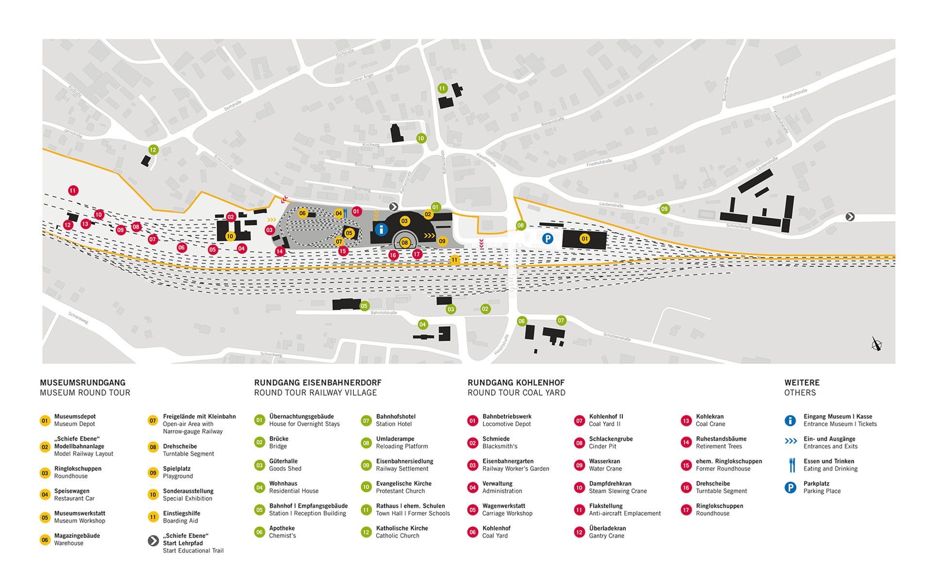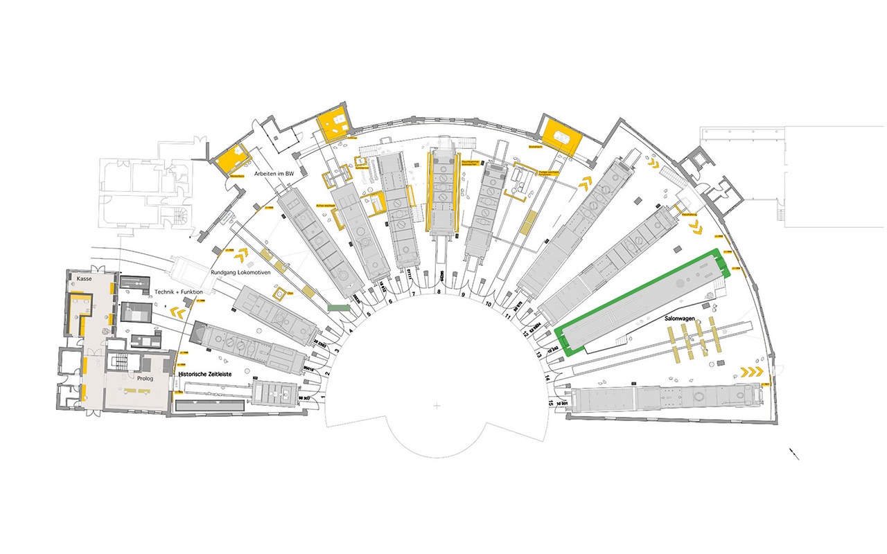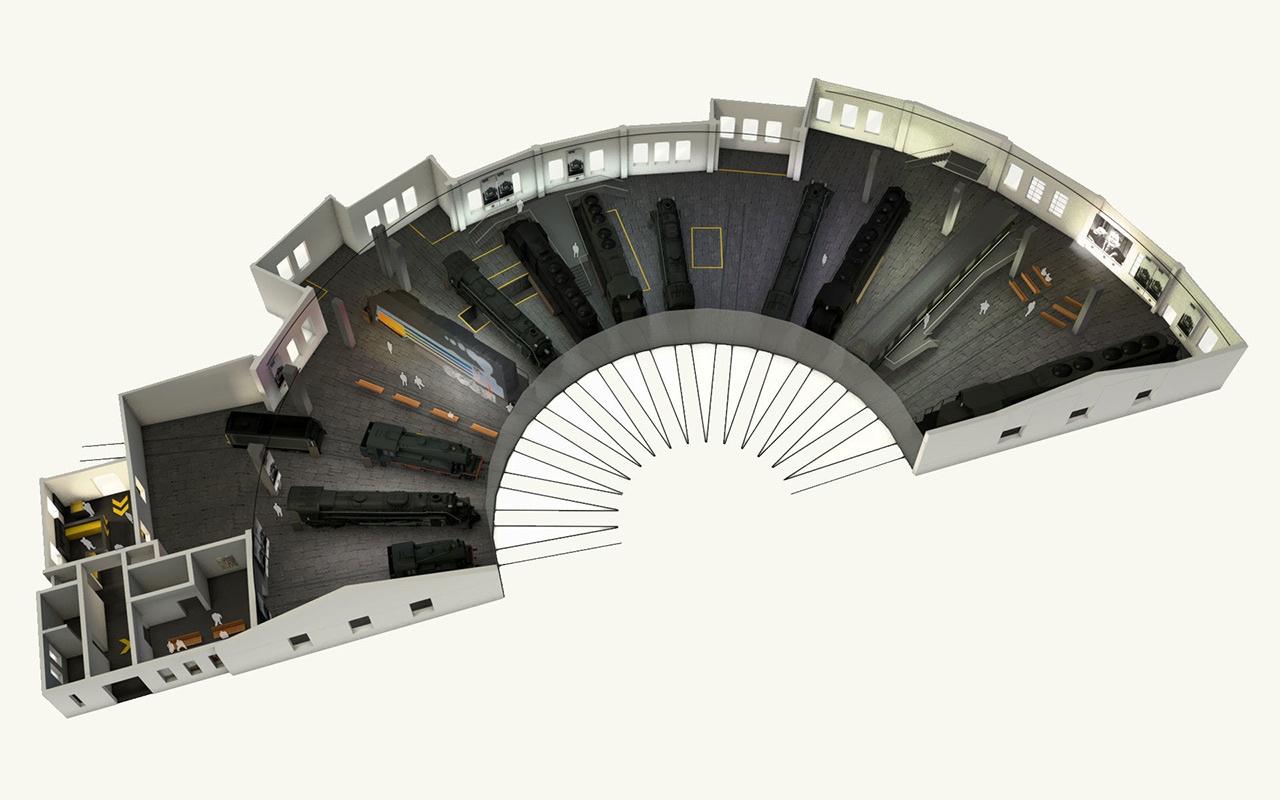 “德國濕弗洛科莫蒂夫博物館”由三個部分組成:鐵路村、沿著陡峭鐵路線的“希費(fèi)埃比尼”教學(xué)和信息通道、圓屋博物館。游客可以通過蒸汽技術(shù)的引進(jìn)、油庫的建立以及相關(guān)的新技術(shù)、職業(yè)和活動,了解Neuenmarkt的生活發(fā)生了怎樣的變化。圓屋的博物館保留了原有的車庫和車間特征,創(chuàng)建了一個時間軸,為參觀者提供了關(guān)于德國蒸汽機(jī)車技術(shù)發(fā)展的所有重要信息,并將其作為一個工作場所。
